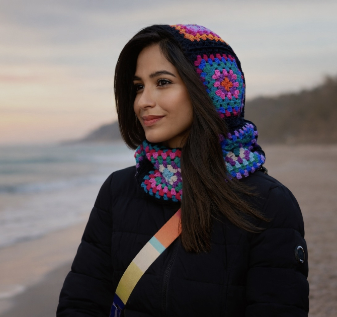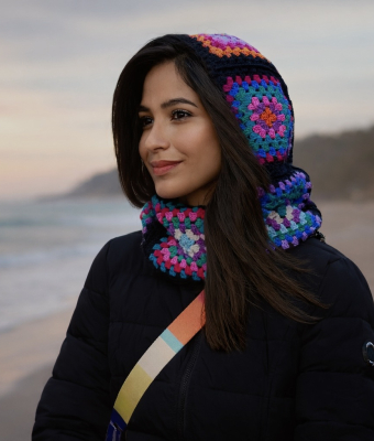 Niepowtarzalny kaptur wykonany ręcznie szydełkiem w pracowni ZUZU. Postanowiliśmy wykorzystać jako element ozdobny całej serii ,,kwadraty babuni" i stworzyć kolorową i jedyną w swoim rodzaju kolekcję, którą znajdziecie tylko u nas:) Kaptur od wewnątrz posiada podszewkę 100% bawełnianą.