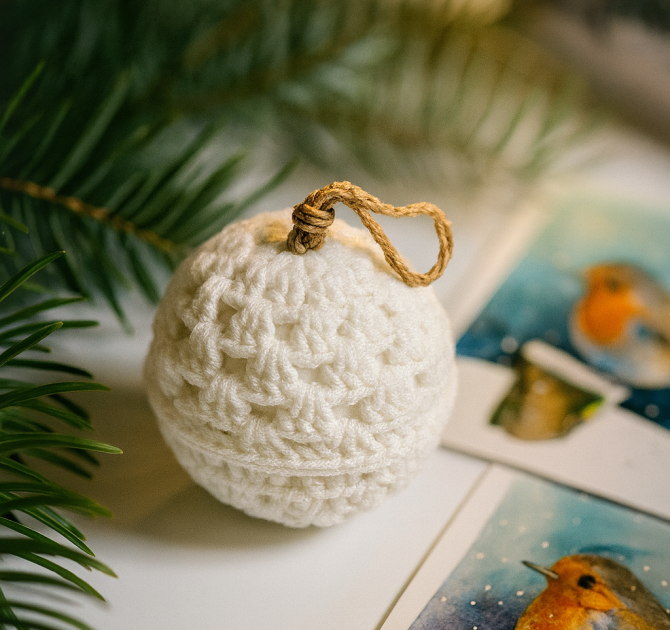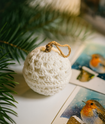 Bombka wykonana ręcznie szydełkiem w pracowni ZUZU. Idealna na choinkę, świetna na oryginalny prezent zimowy. Będzie pasować do różnych wnętrz i z pewnością nada ciepłego klimatu. Cena dotyczy jednej sztuki.