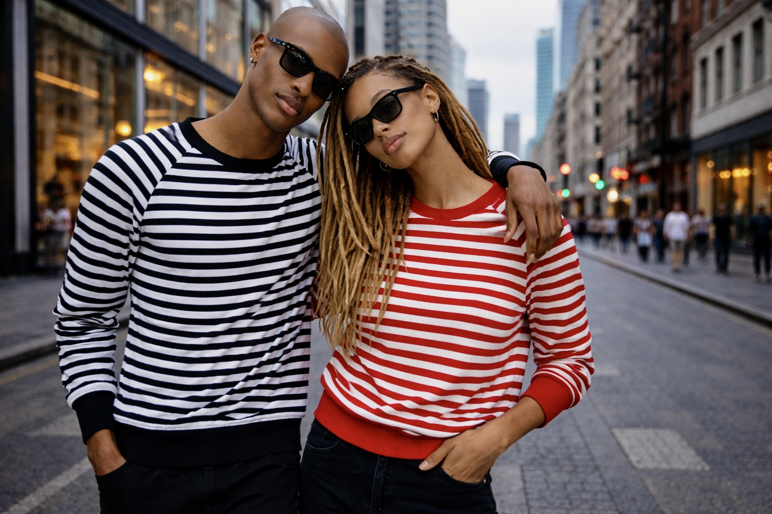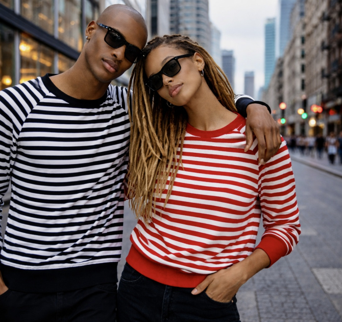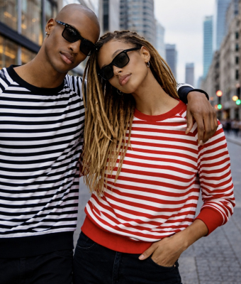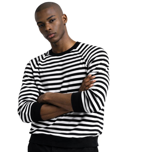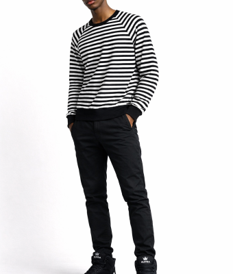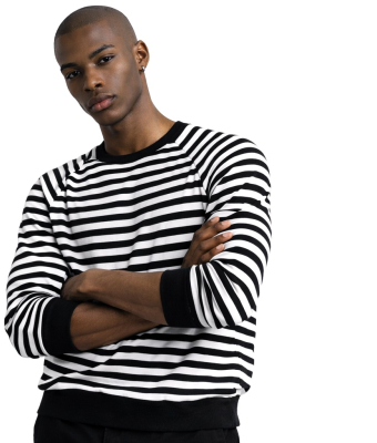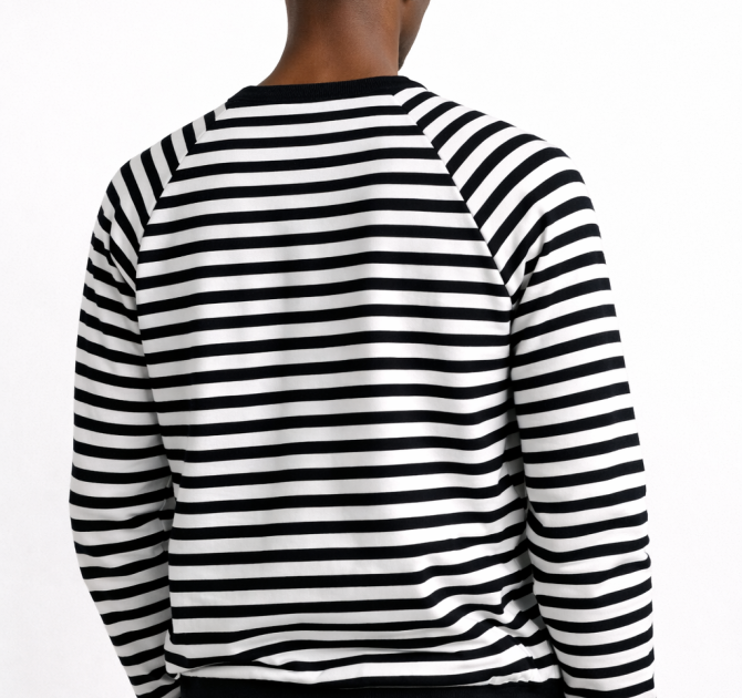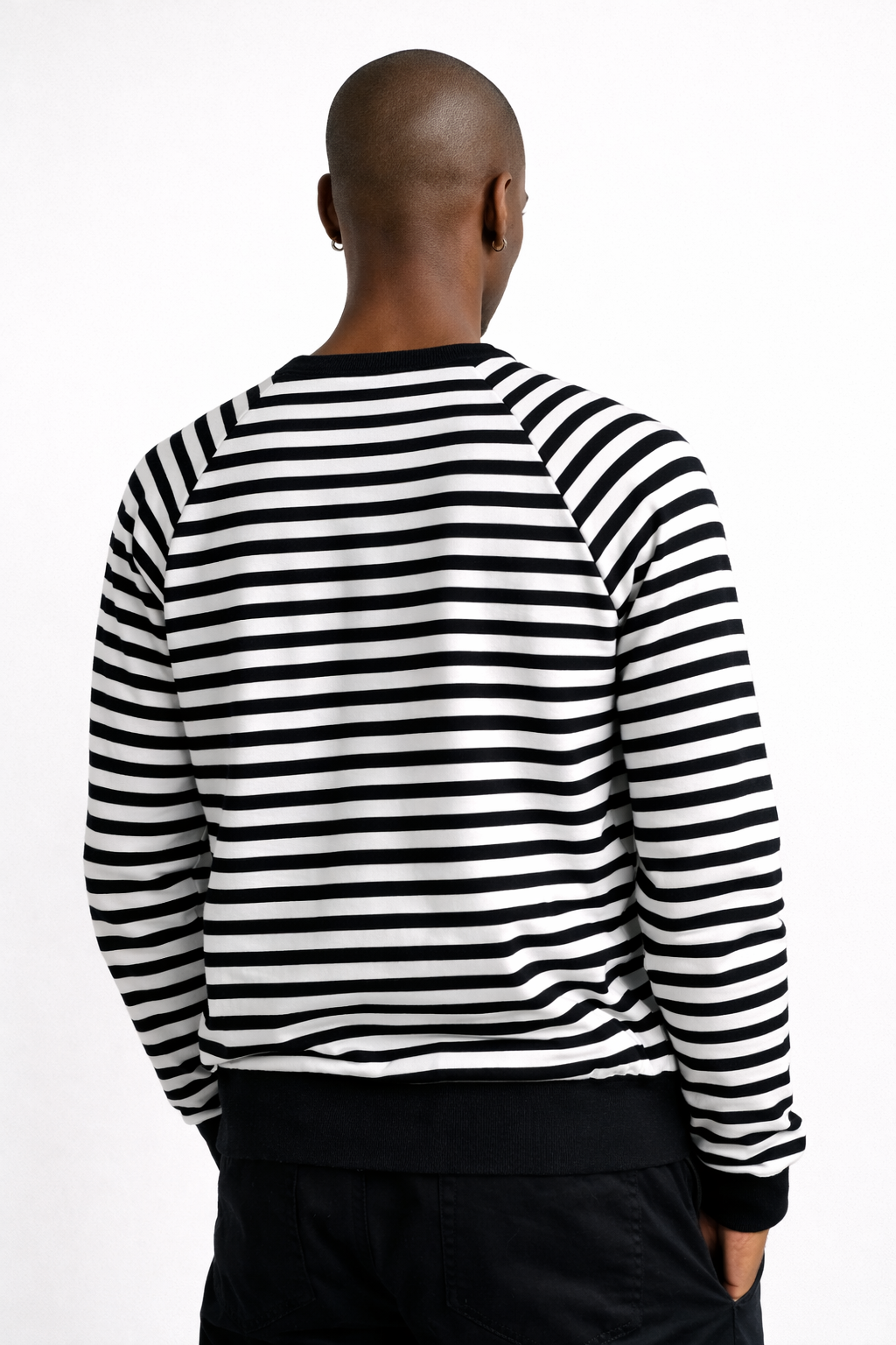 Bluza z bawełny w dziane czarno-białe paski. W ofercie ZUZU rękawy raglanowe. Całość wykończona czarnym ściągaczem i estetyczną lamówką.