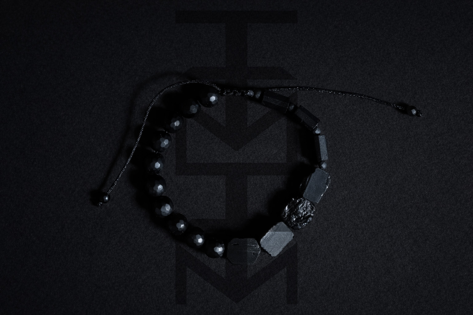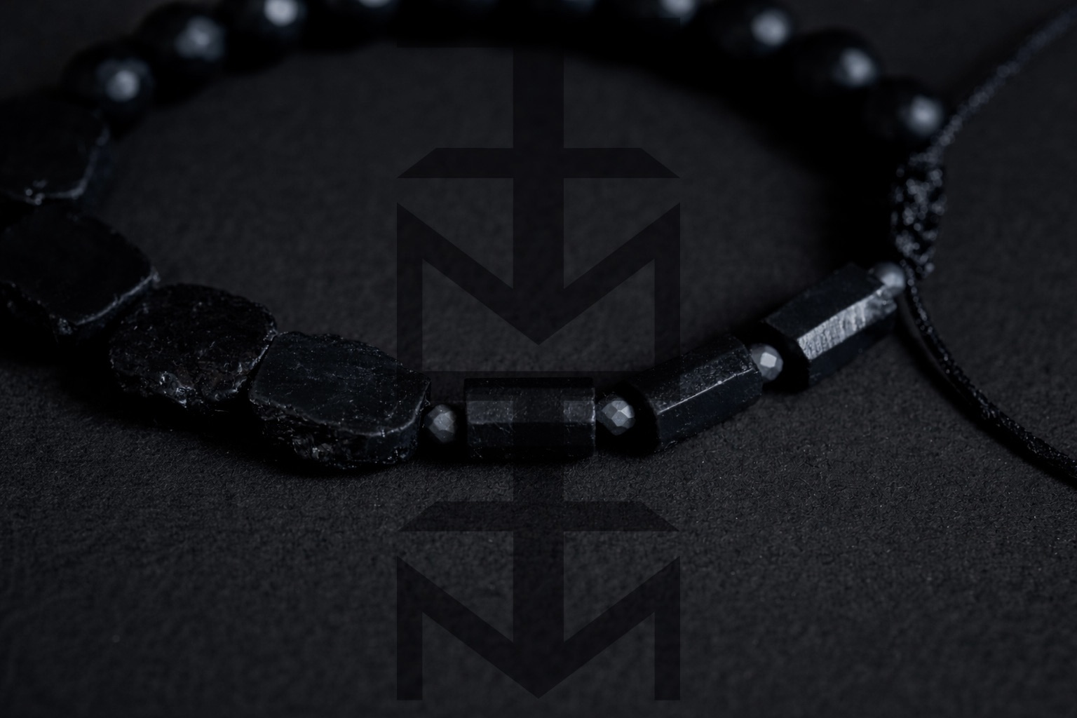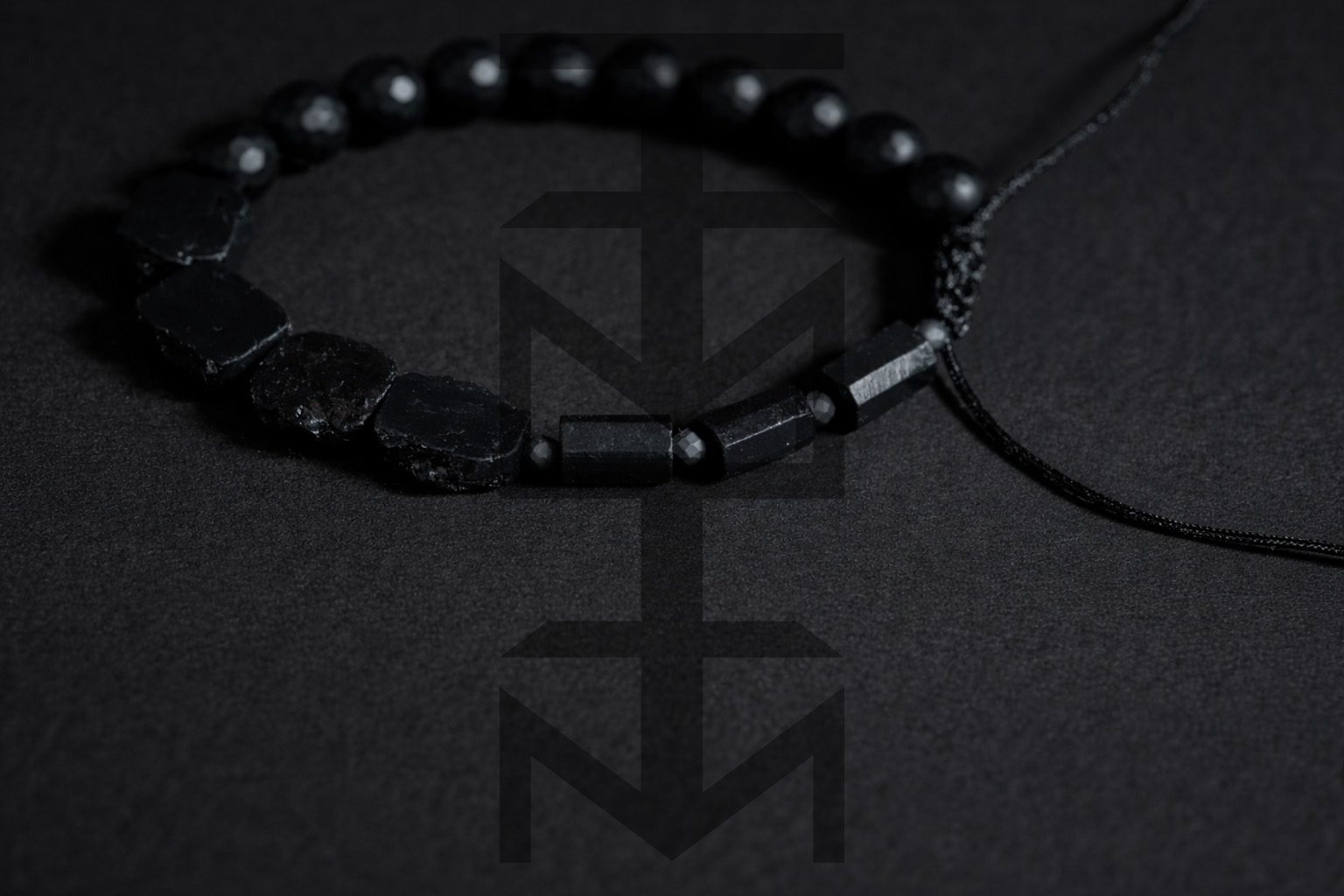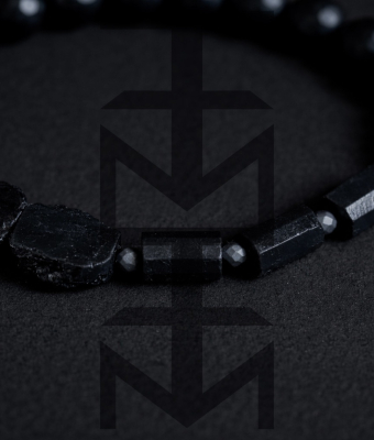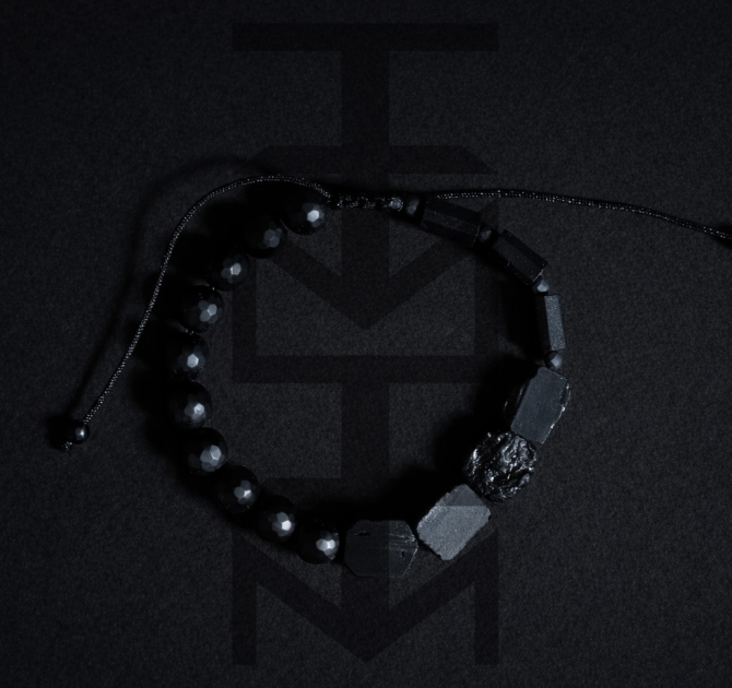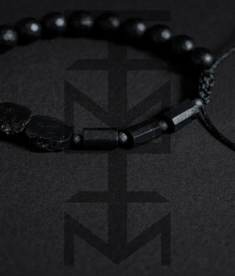 Czarna bransoletka w niezwykle surowym charakterze w całości wykonana z naturalnych kamieni o niezwykłym znaczeniu. Odpowiednia dla WEGAN. Idealna na wakacje i prezent! Bransoletka posiada wygodne, regulowane wiązanie.