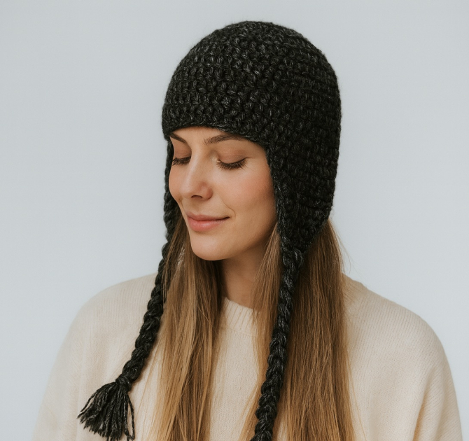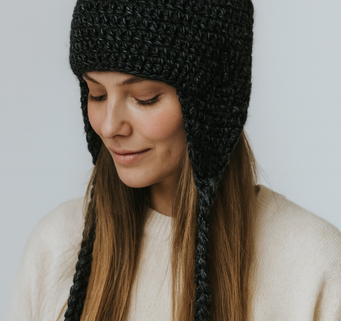 CZARNA CZAPKA Z NAUSZNIKAMI