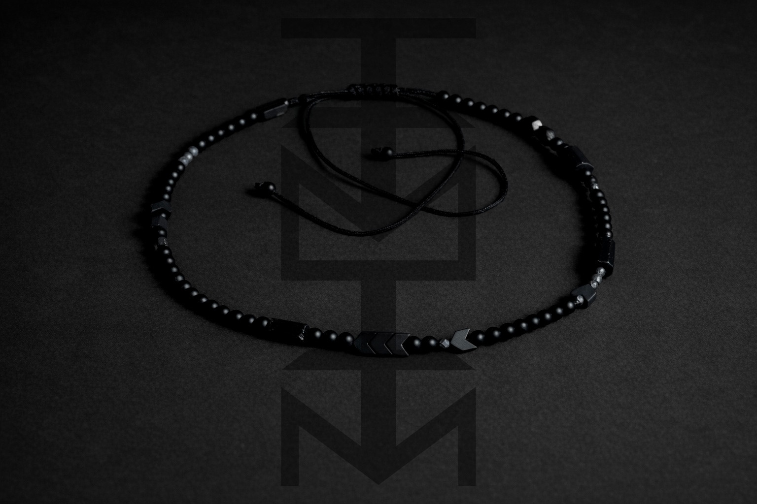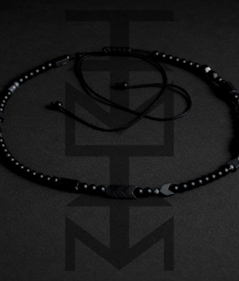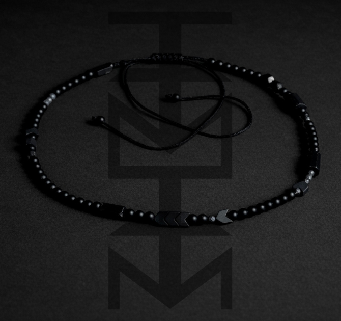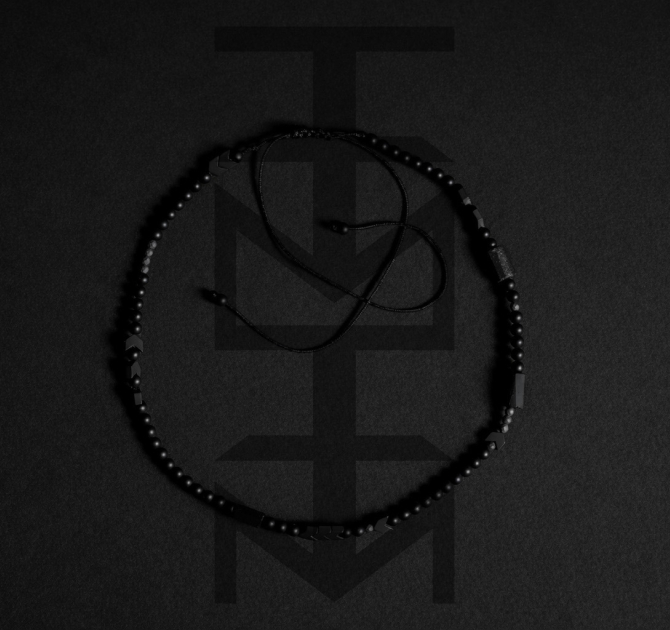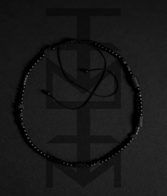 Wygodny naszyjnik wykonany z czarnych kamieni na sznurku z możliwością regulacji. Odpowiedni dla WEGAN. Idealny na wakacje i prezent!