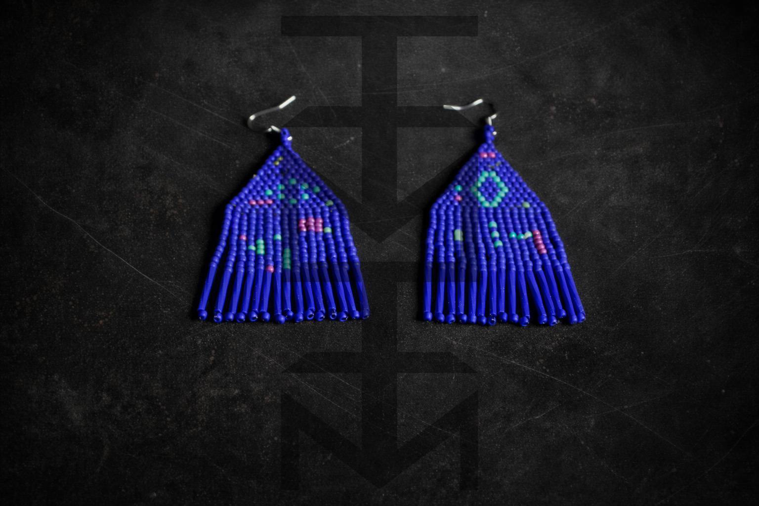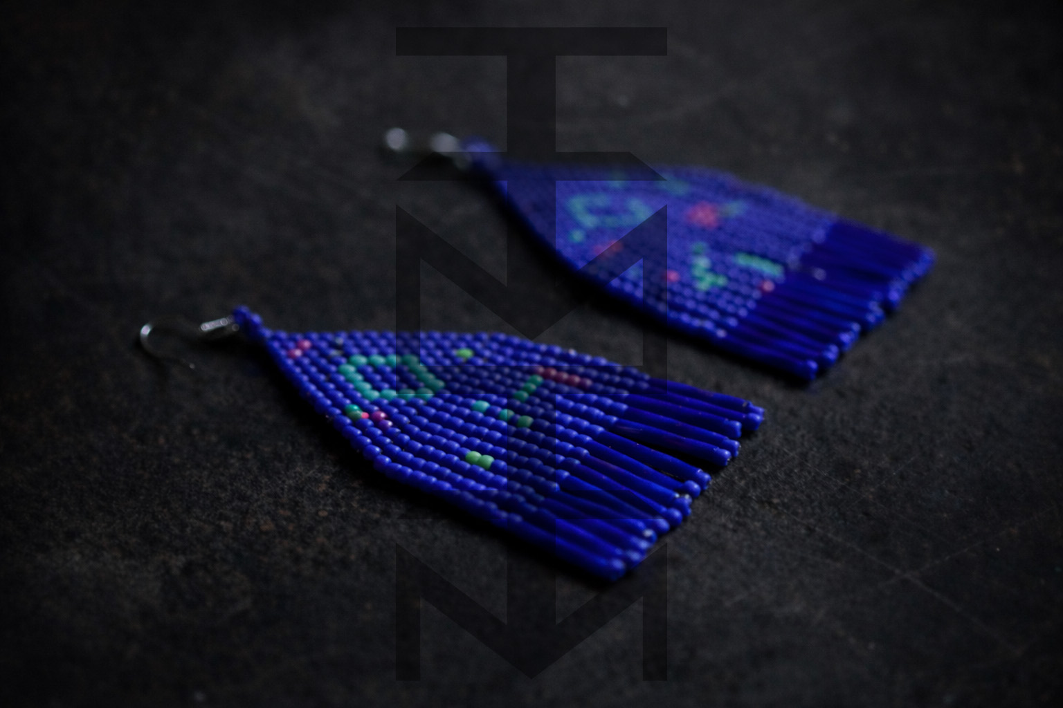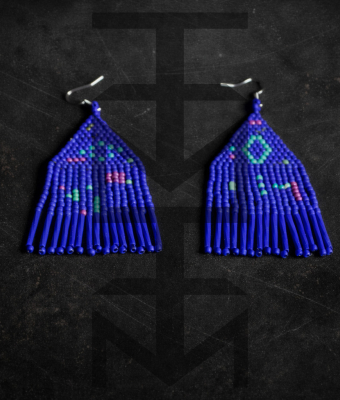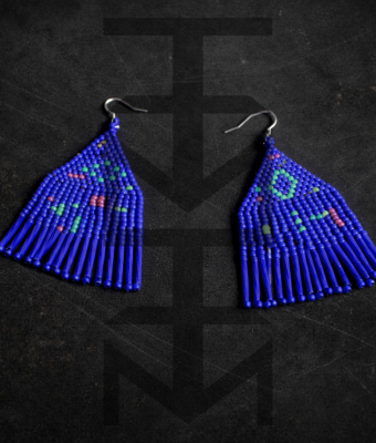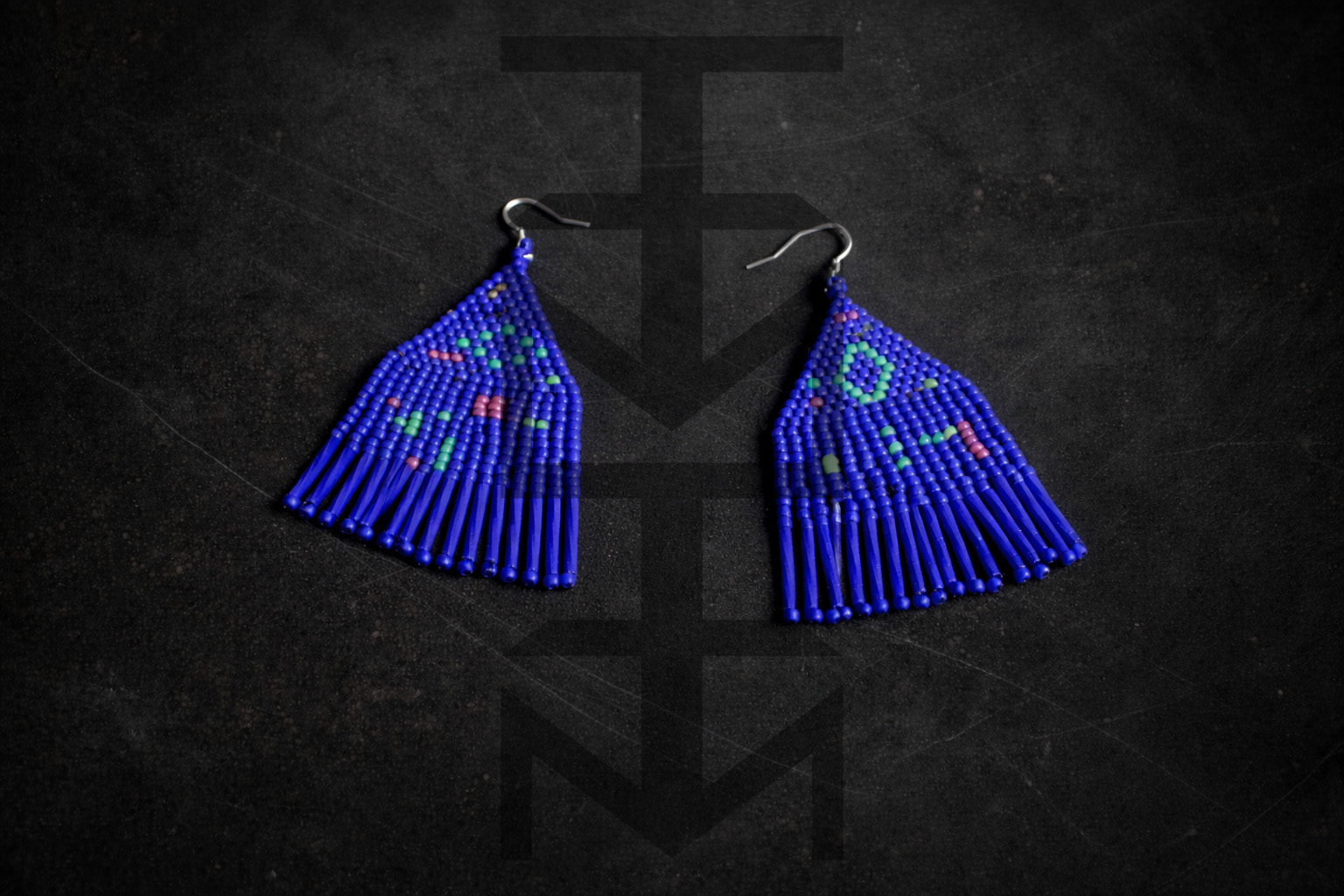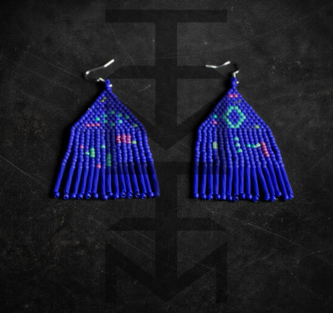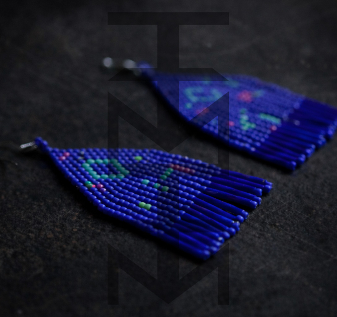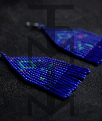 Efektowne kolczyki w kobaltowym kolorze zostały zaprojektowane i w całości wykonane czasochłonną techniką beadingu w pracowni ZUZU. Są one duże, ale bardzo lekkie. Piękne połączenie kolorów i wzorów świetnie sprawdzi się w letnich stylizacjach.