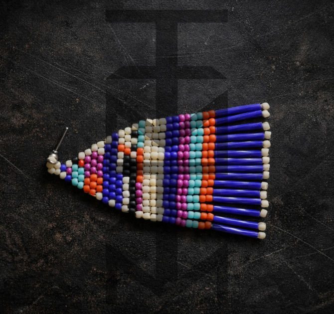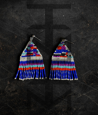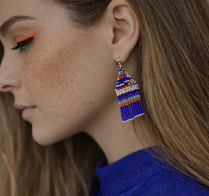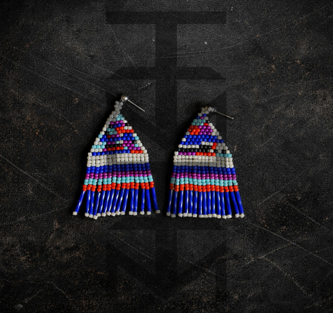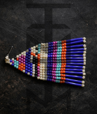 Efektowne kolczyki niczym tkane na krośnie zostały zaprojektowane i w całości wykonane czasochłonną techniką beadingu w pracowni ZUZU. Są one duże, ale bardzo lekkie.