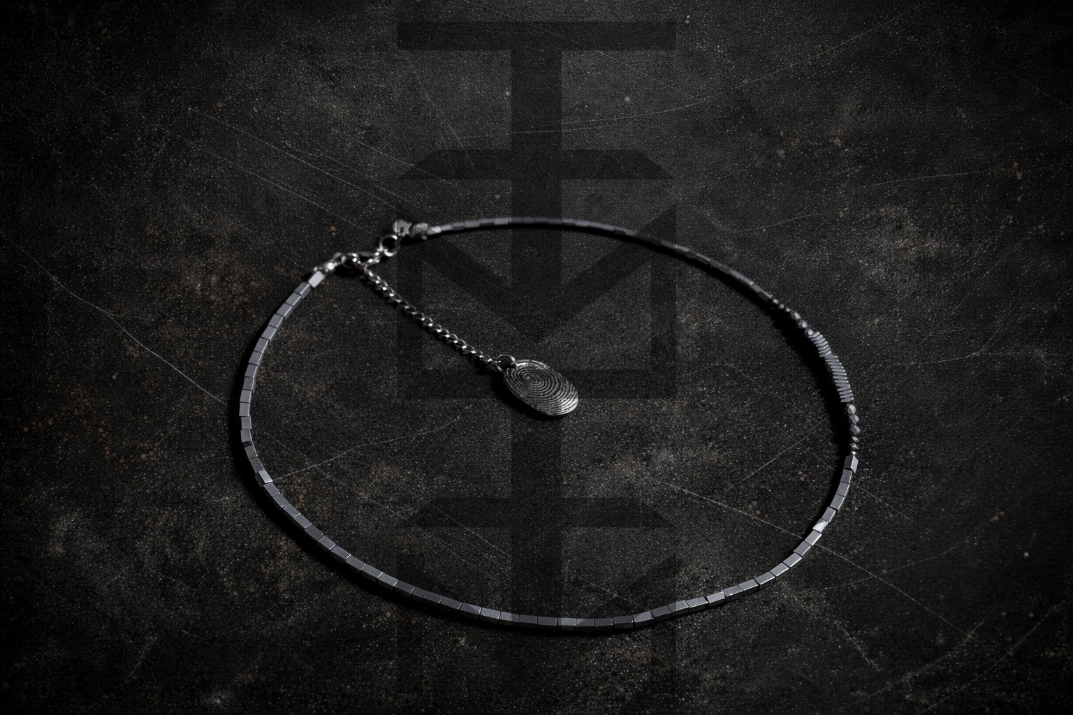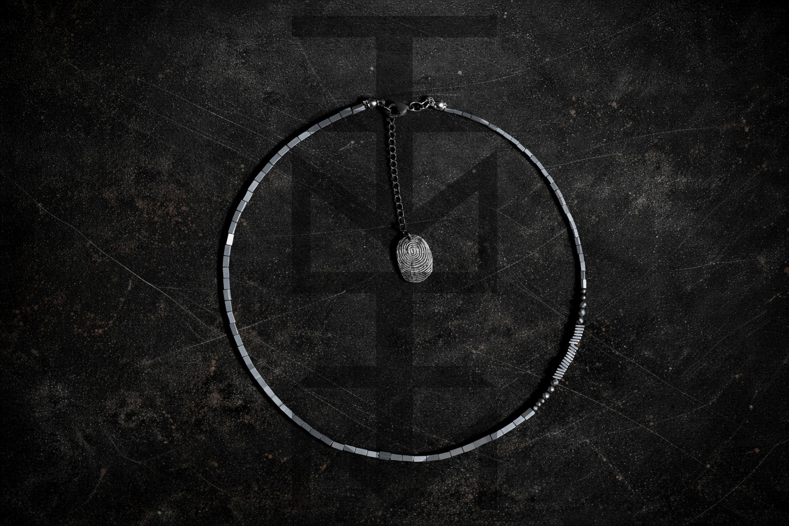NASZYJNIK ZE SREBRNEGO HEMATYTU - LINIE PAPILARNE