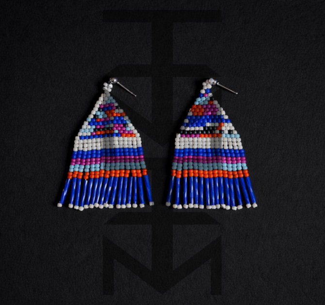 Efektowne kolczyki niczym tkane na krośnie zostały zaprojektowane i w całości wykonane czasochłonną techniką beadingu w pracowni ZUZU. Są one duże, ale bardzo lekkie.