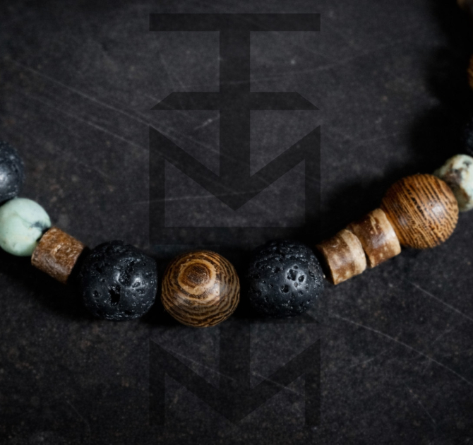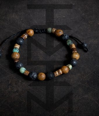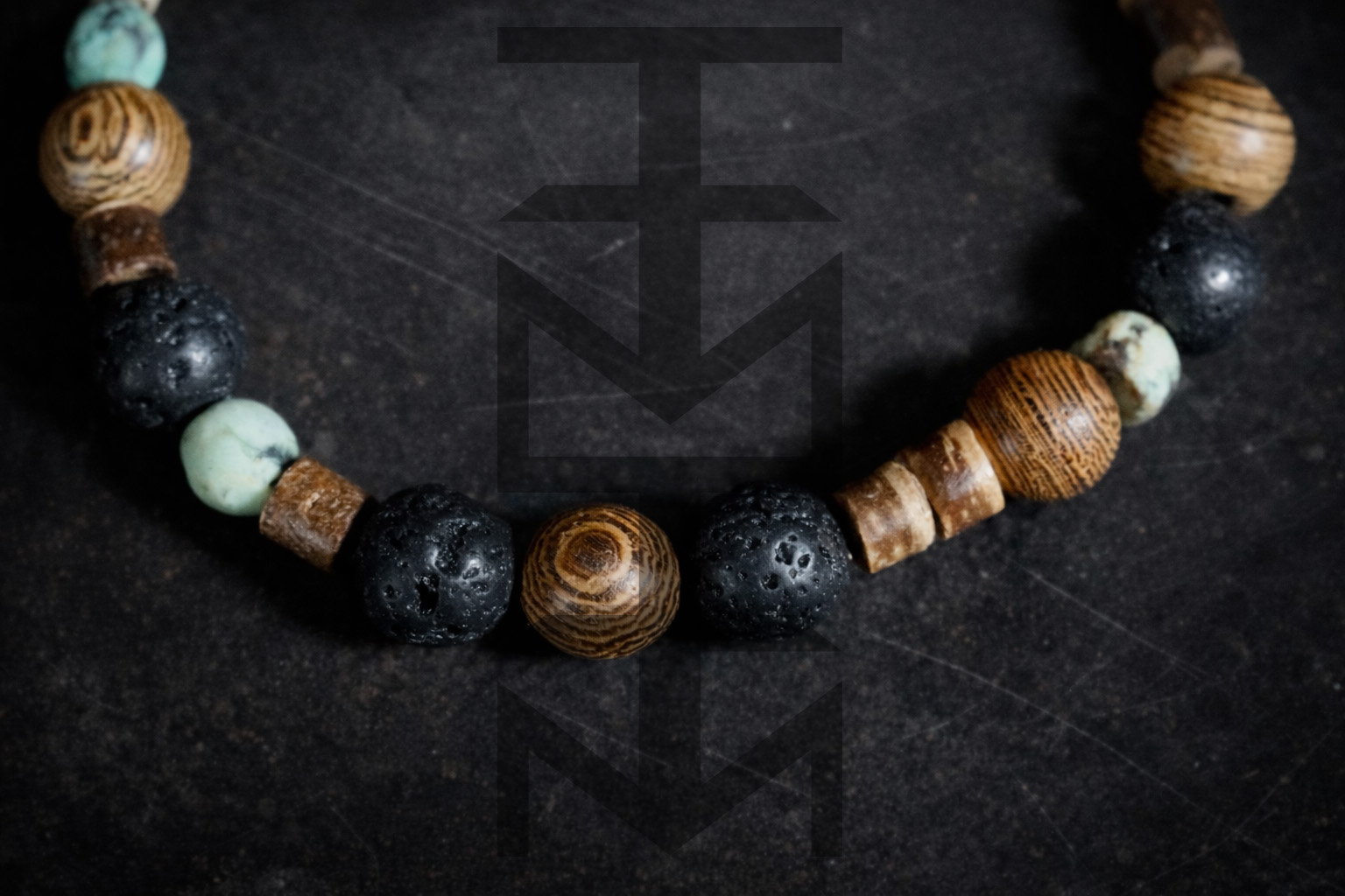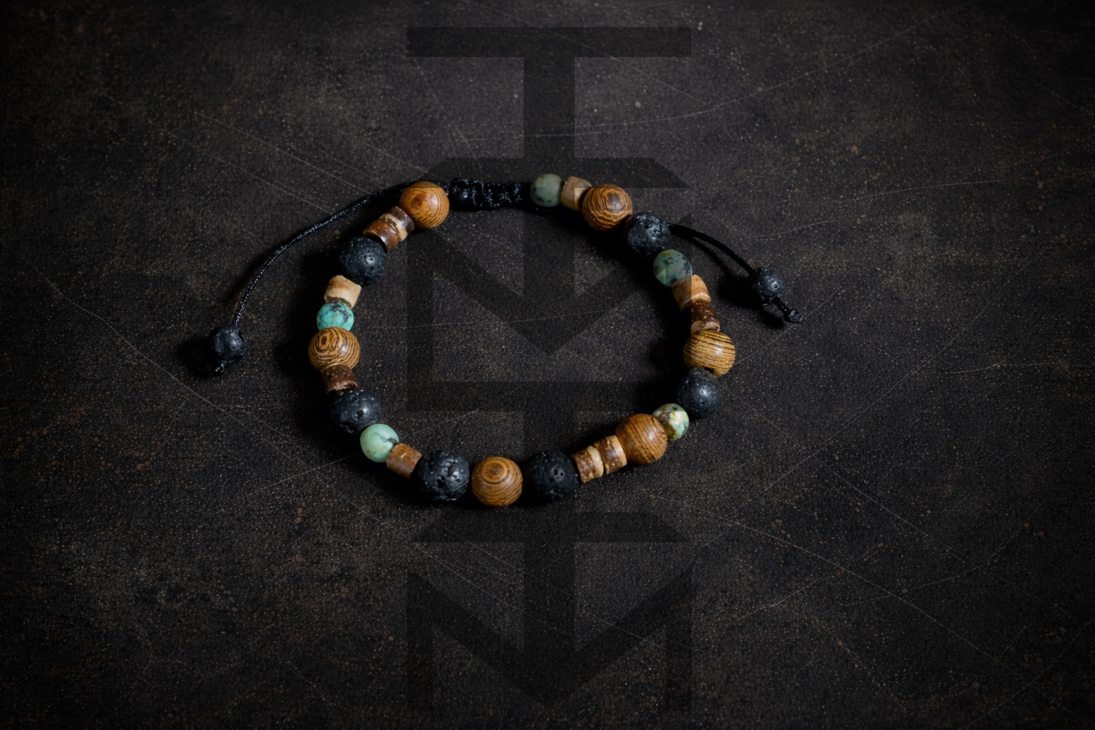 BRANSOLETKA Z TURKUSEM I DREWNEM SANDAŁOWYM & KOKOSOWYM