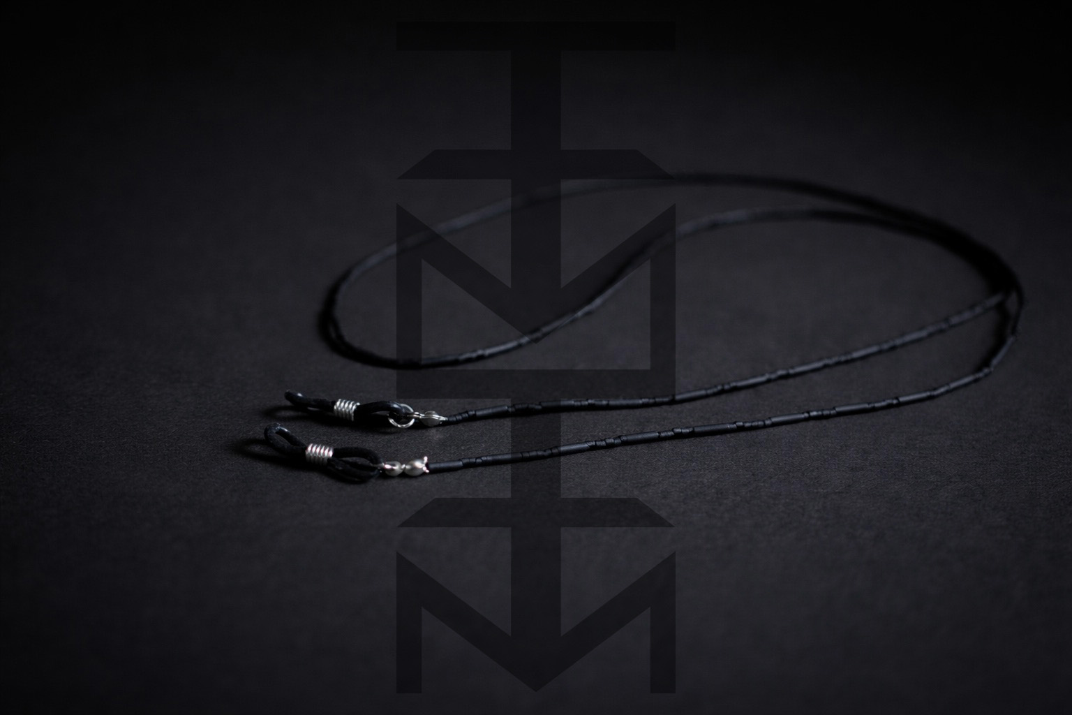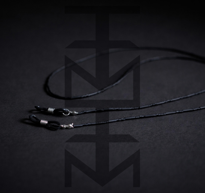 Niezwykle wygodny łańcuszek wykonany z czarnych matowych koralików szklanych oraz elastycznych gumek pasujących do różnych okularów. To doskonały gadżet dla osób aktywnych ceniących w modzie praktyczne rozwiązania.