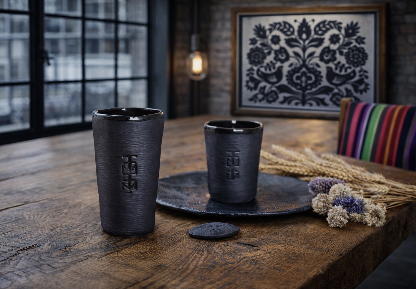 Zestaw śniadaniowy zaprojektowany został przez markę ZUZU. Charakterystycznym jego elementem jest odbity znaczek, który powstał z połączonego logo marki ZUZU. Minimalizm i surowość podkreślone zostały prostą, ponadczasową formą oraz kolorem czarnym. Z pewnością pasować będzie do wielu wnętrz i różnej stylistyki. Całość została wykonana i wypalona z gliny przez artystkę oraz instruktorkę pracy z ceramiką-Justynę w Pracowni Ceramiki-Naturalica*.