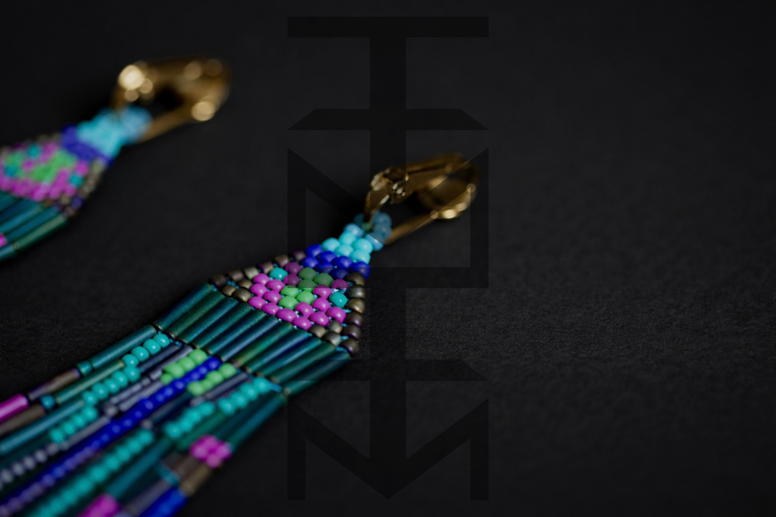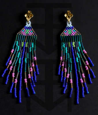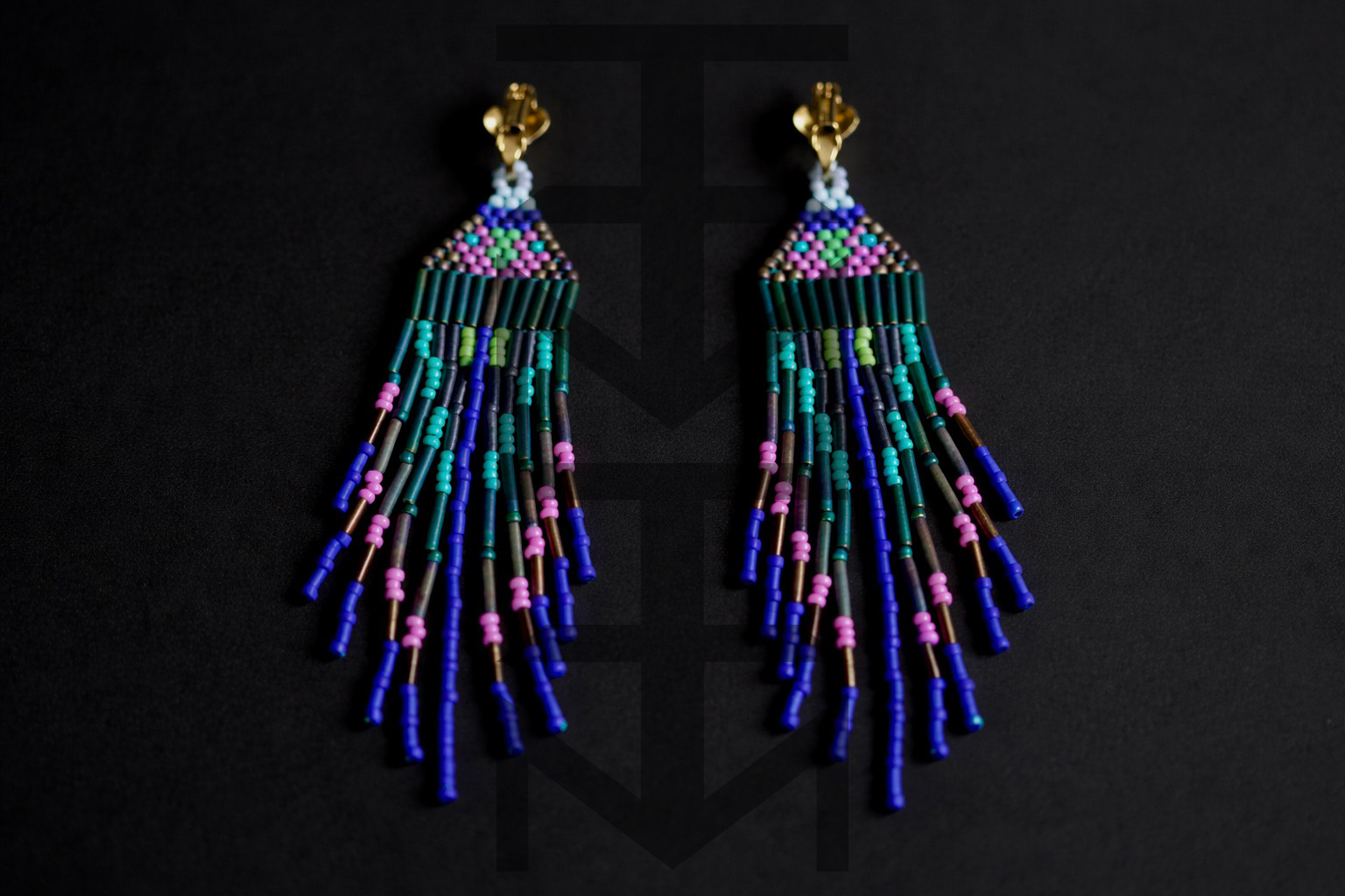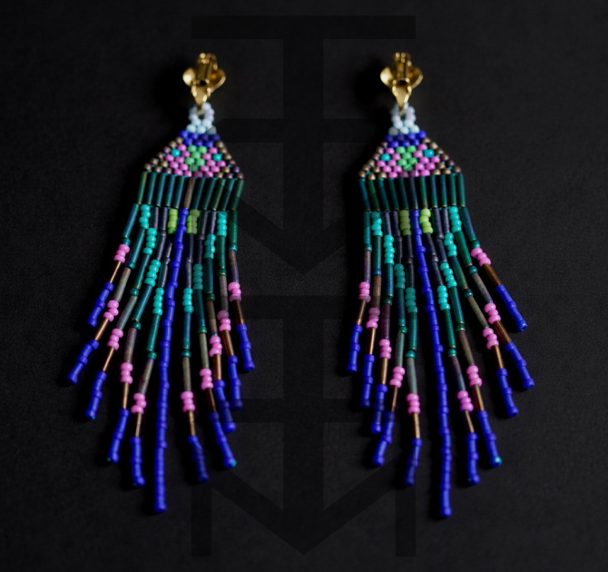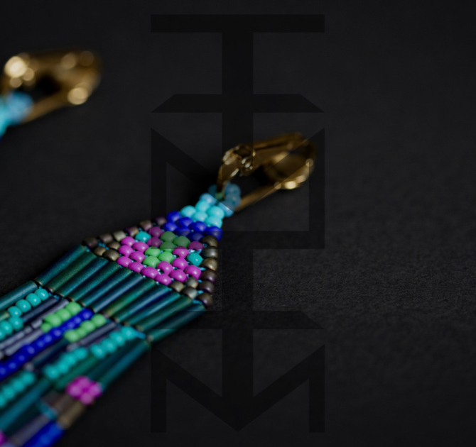 Efektowne klipsy w stylu boho. Zostały wykonane czasochłonną techniką beadingu w pracowni ZUZU. Są dość duże, ale bardzo lekkie. Piękne połączenie kolorystyczne świetnie sprawdzi się w letnich stylizacjach.