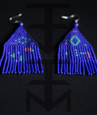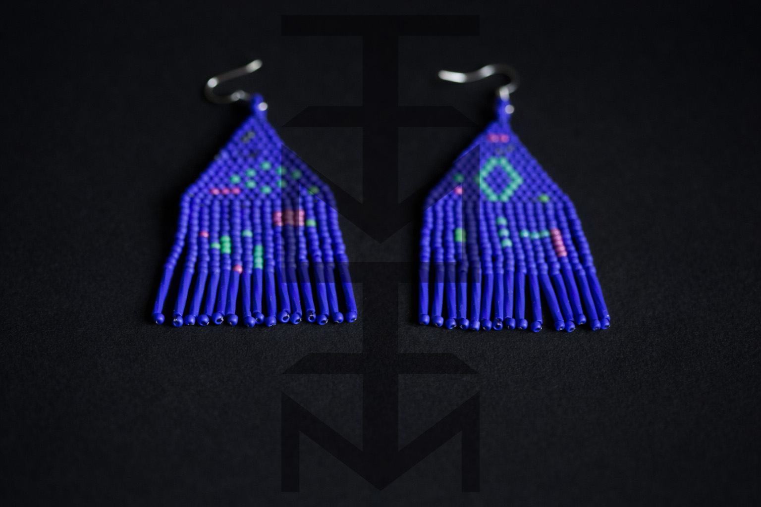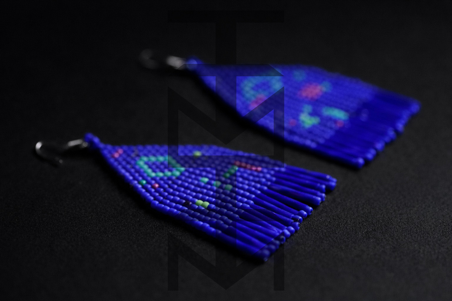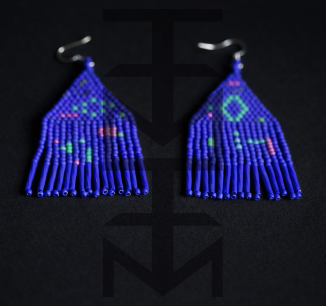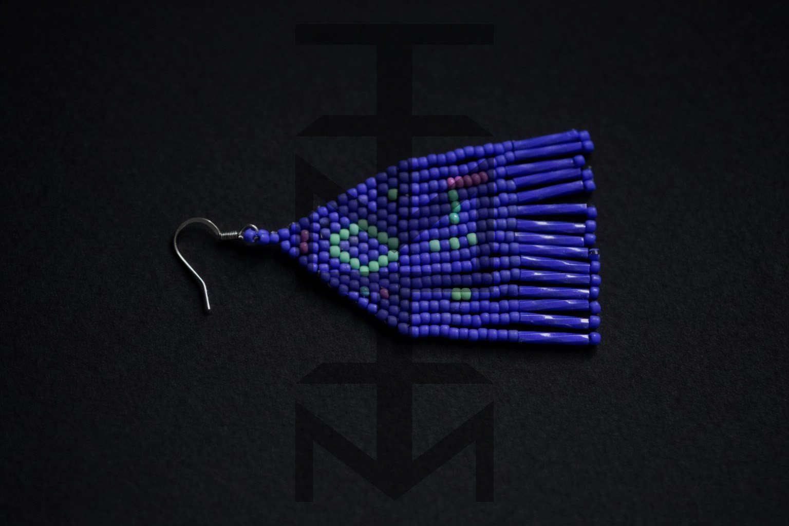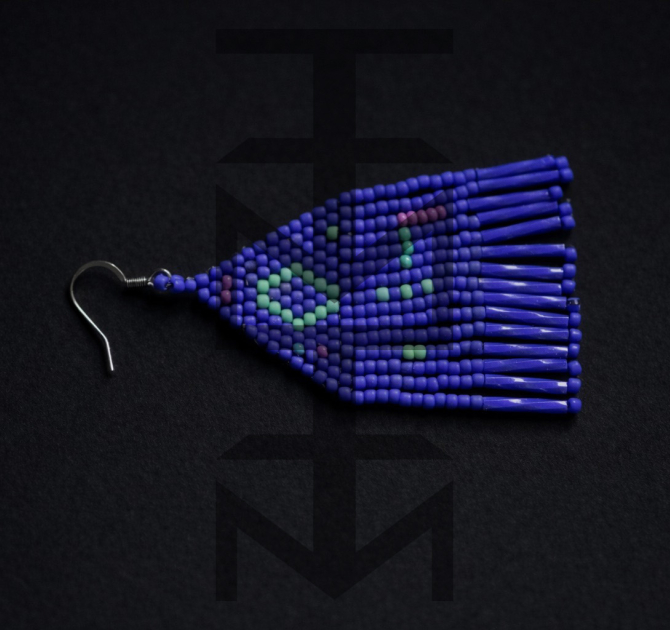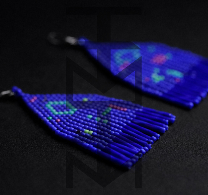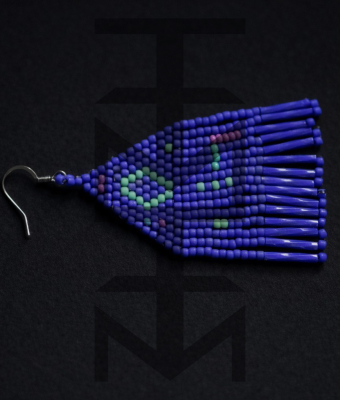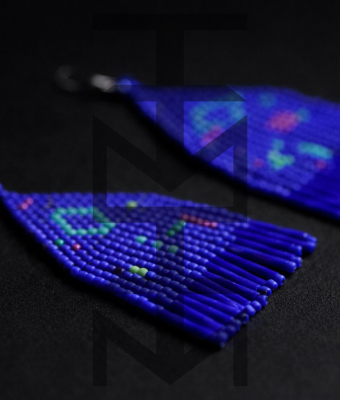 Efektowne kolczyki w kobaltowym kolorze zostały zaprojektowane i w całości wykonane czasochłonną techniką beadingu w pracowni ZUZU. Są one duże, ale bardzo lekkie. Piękne połączenie kolorów i wzorów świetnie sprawdzi się w letnich stylizacjach.