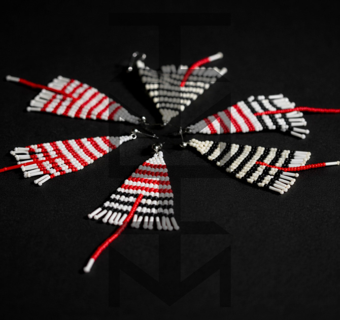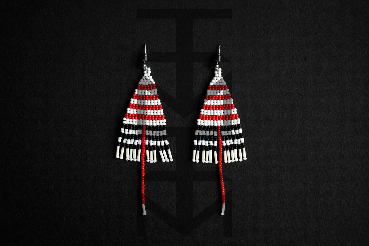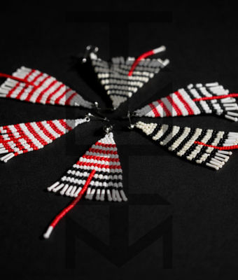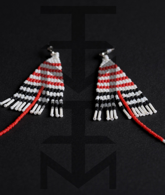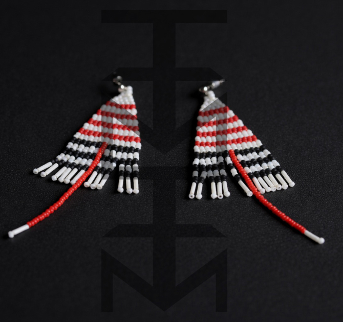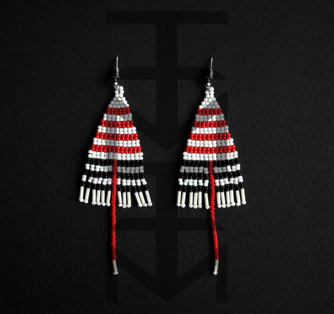 Efektowne kolczyki w czarno-biało-czerwone paski zostały zaprojektowane i w całości wykonane czasochłonną techniką beadingu w pracowni ZUZU. Są one duże, ale bardzo lekkie. Nowoczesny minimalizm i elegancja dla tych, którzy uwielbiają paski!
