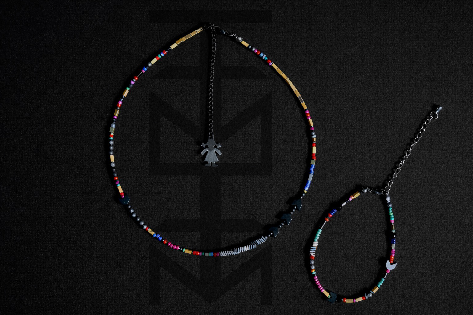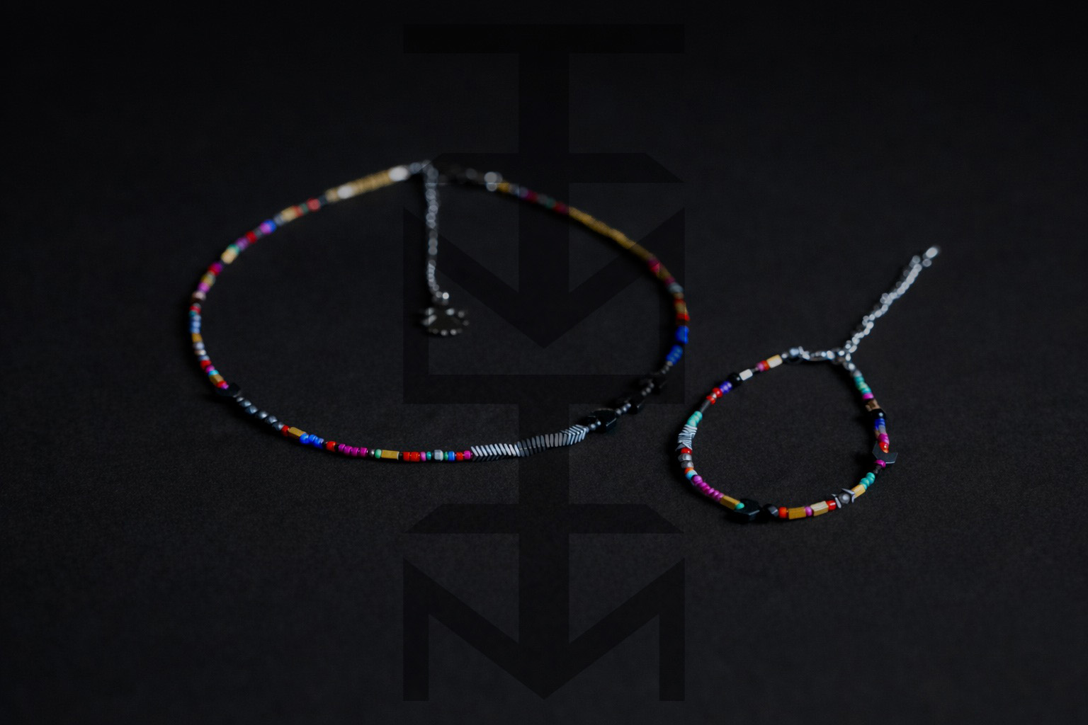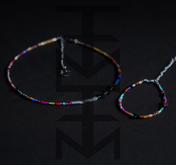 KOLOROWY KOMPLET MULTI Z HEMATYTEM ZŁOTYM I SREBRNYM
