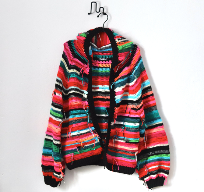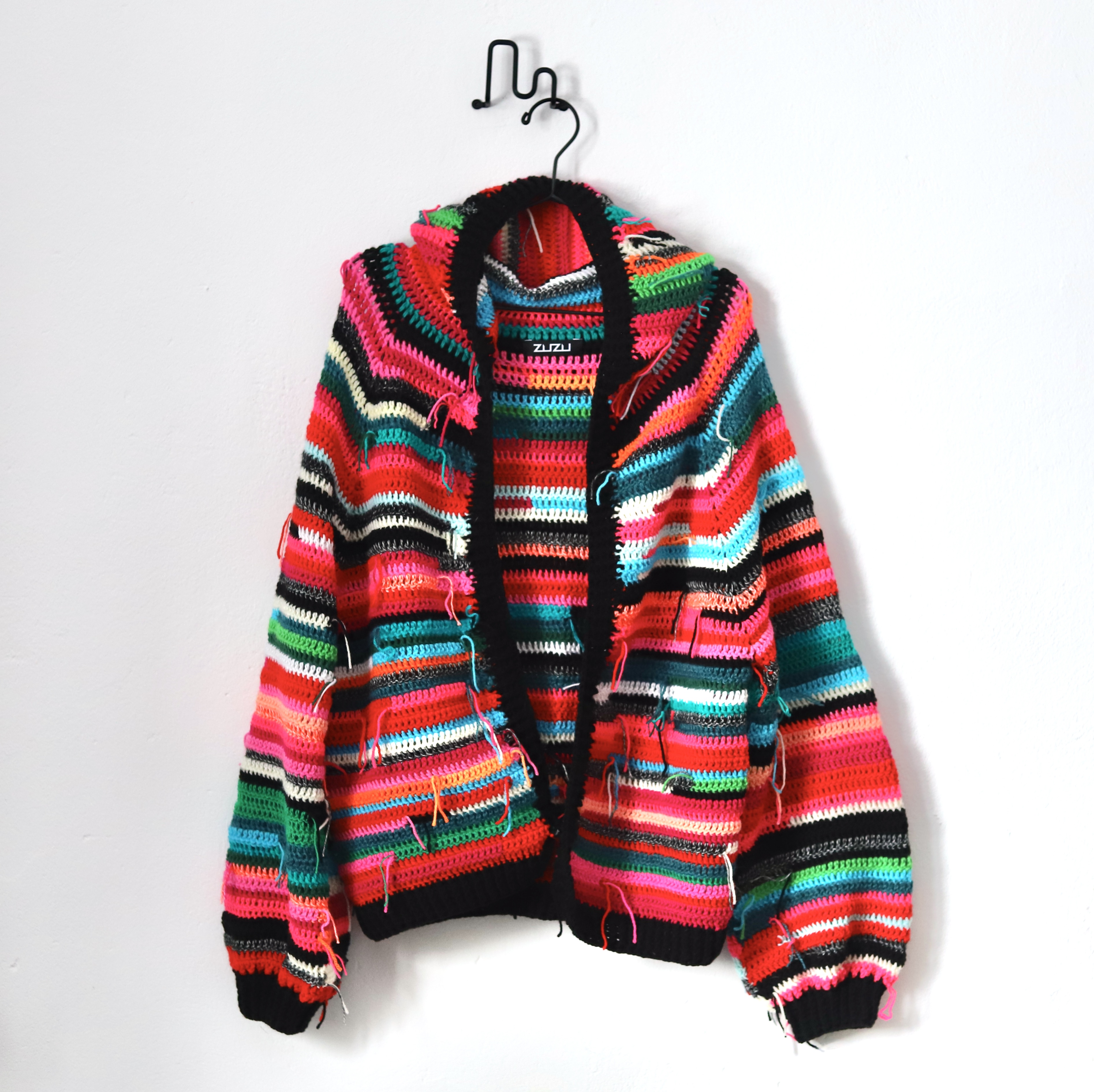 Kolorowy sweter wykonany ręcznie w pracowni ZUZU. 100% handmade. Sweter został wykonany zgodnie z ideą ZERO WASTE & RECYKLINGU. W tym projekcie wykorzystano resztki i końcówki różnych włóczek. Wśród nich znalazły się różne mieszanki: bawełna, bawełna z akrylem, akryl, wełna z akrylem, wełna pochodząca z recyklingu...
