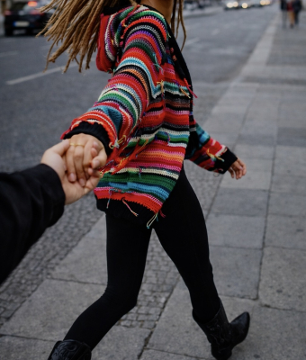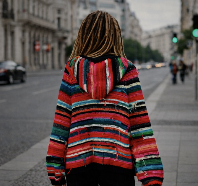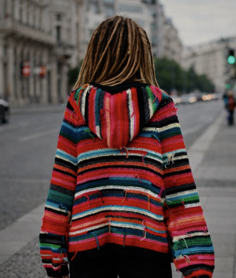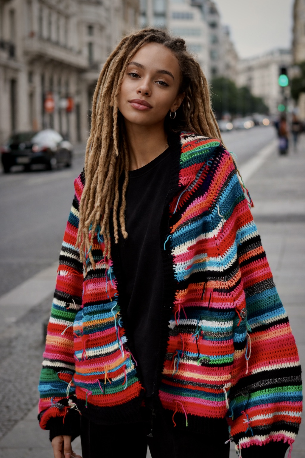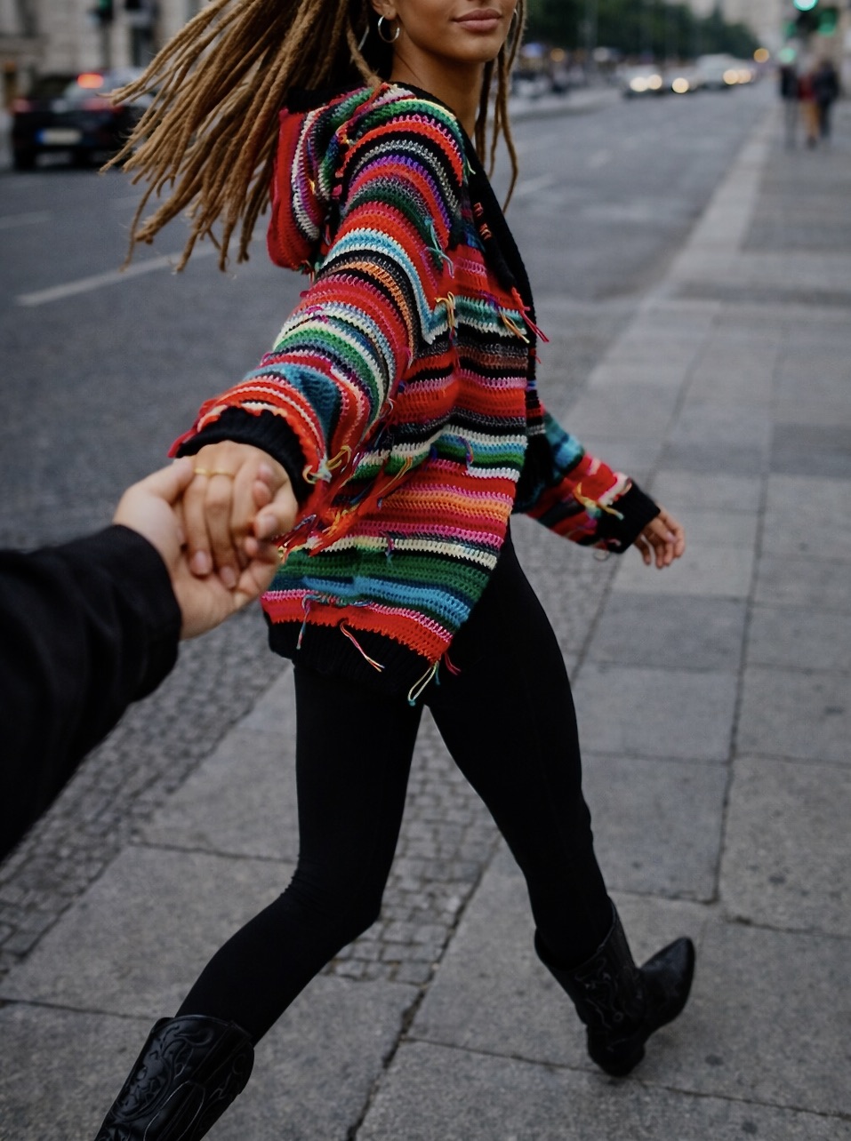 KOLOROWY SWETER Z KAPTUREM GRUNGE BLACK -ZERO WASTE&RECYKLING