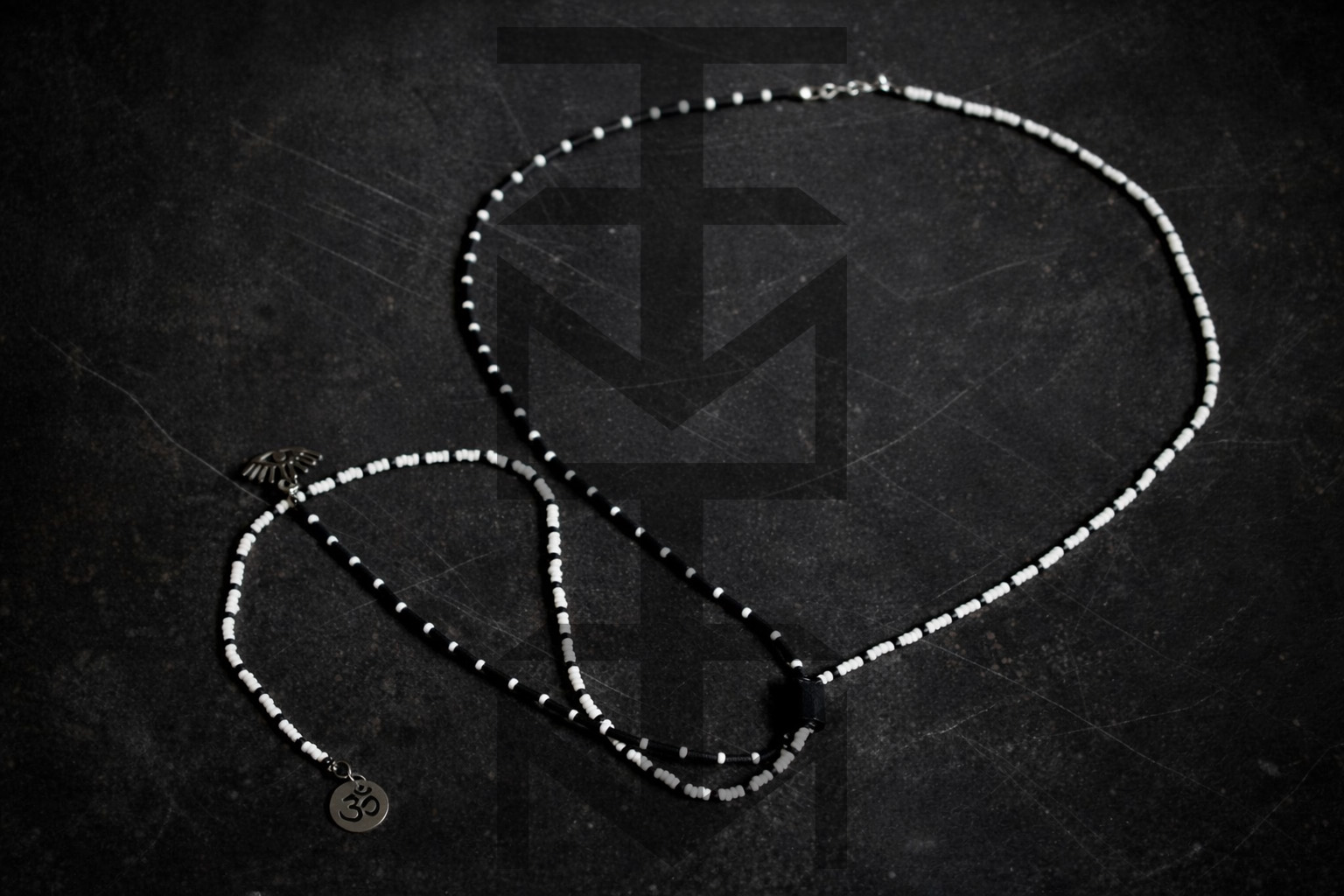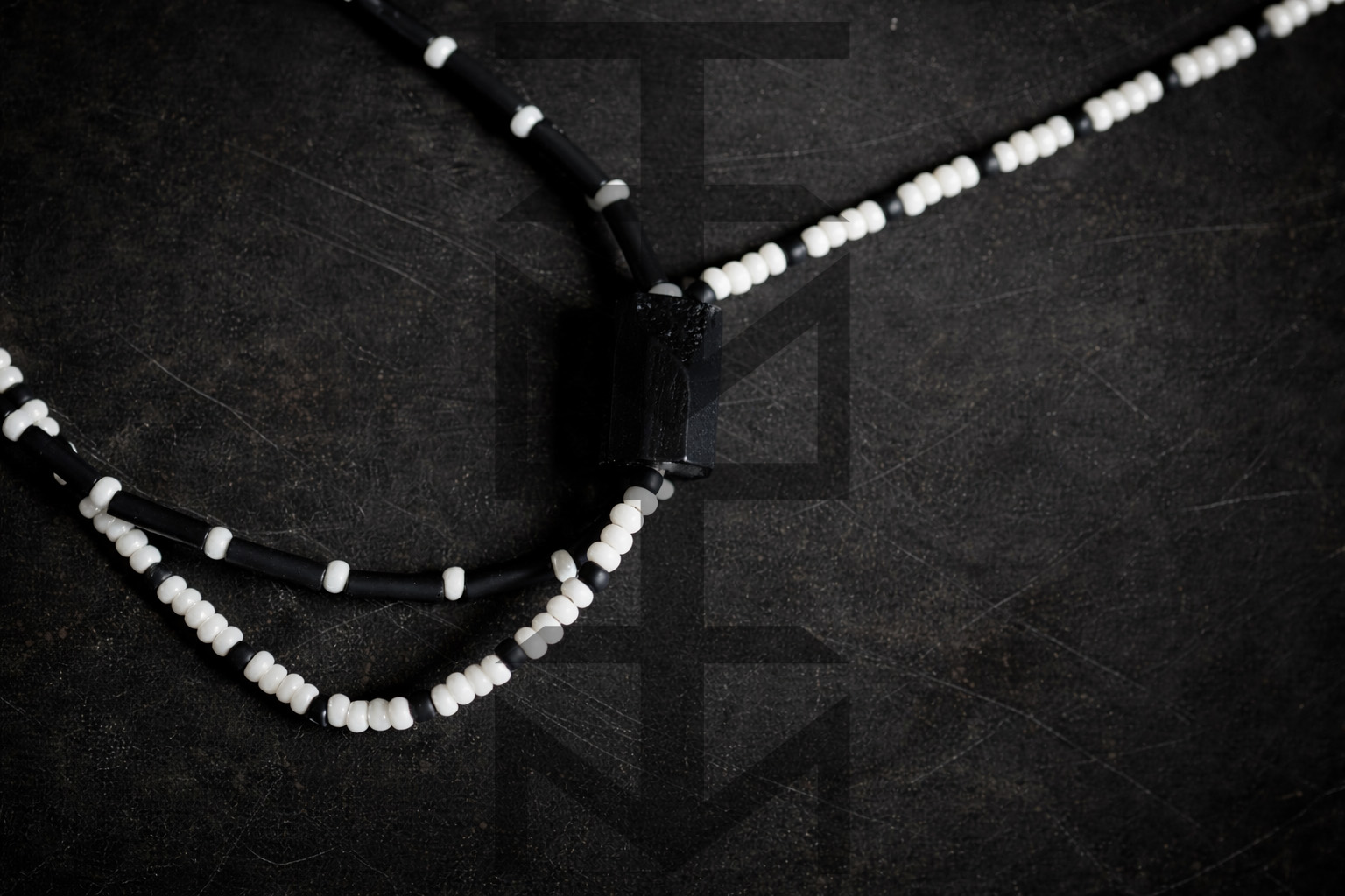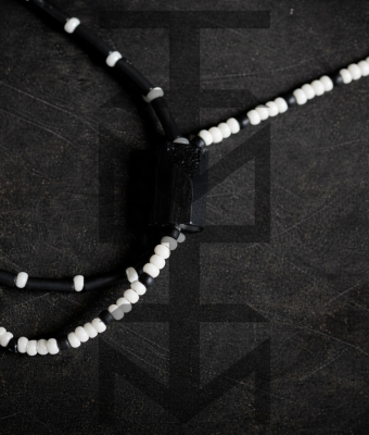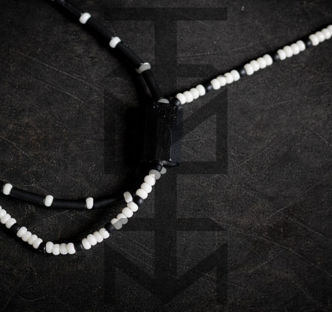 Naszyjnik wykonany z koralików z czarnym turmalinem.