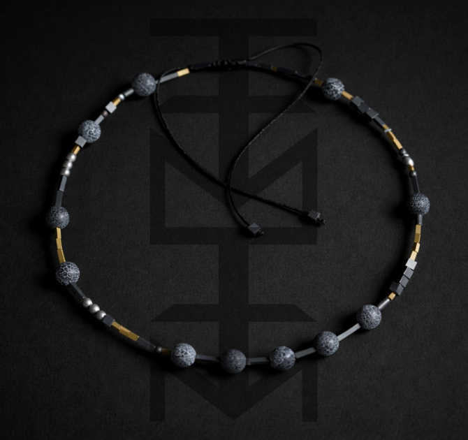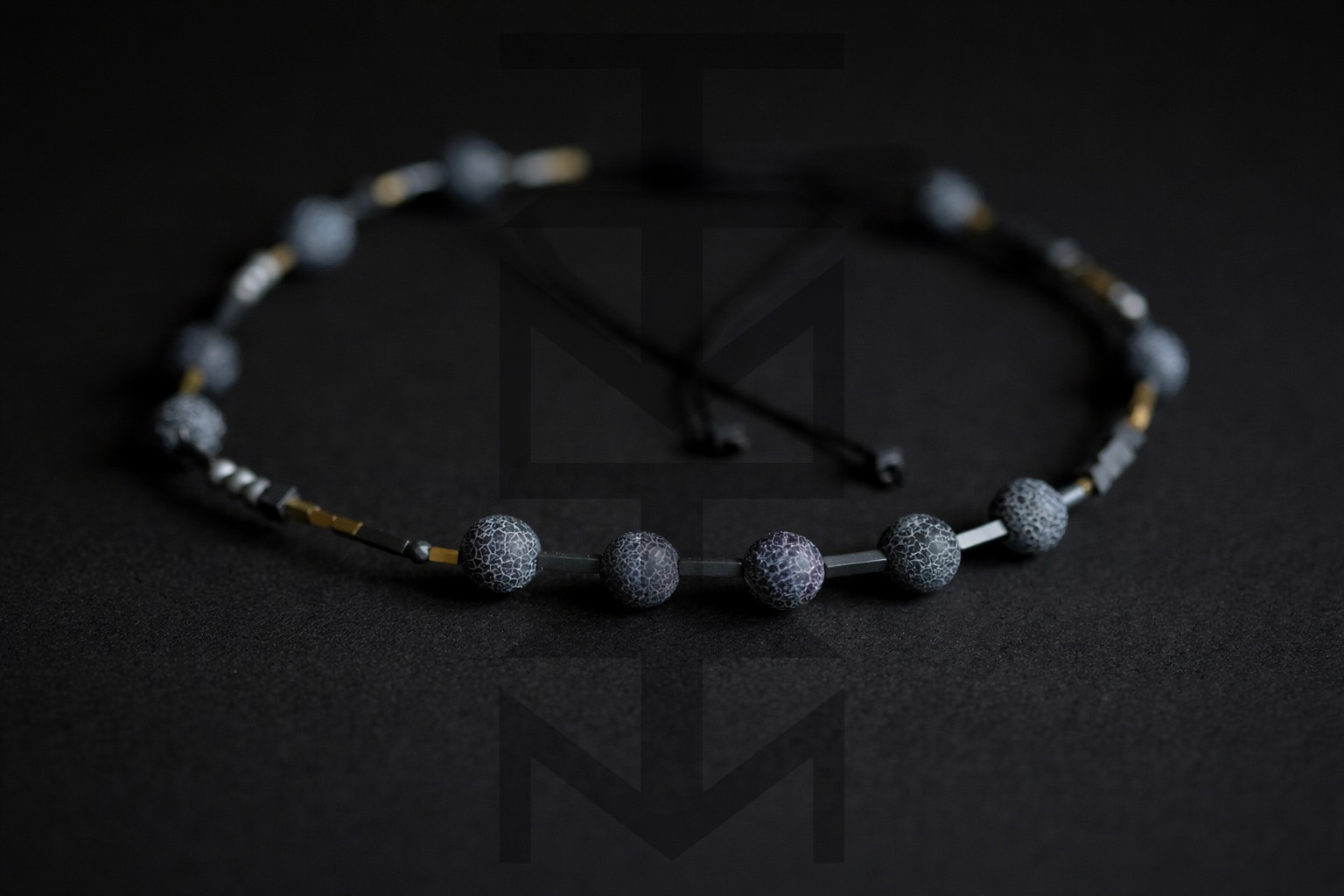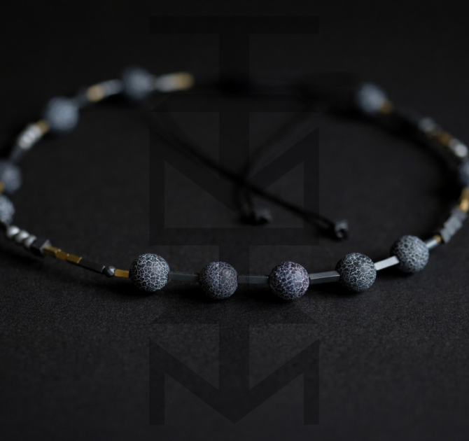 Piękny naszyjnik z agatem w kolorze stalowym i hematytem. Idealny na lato!