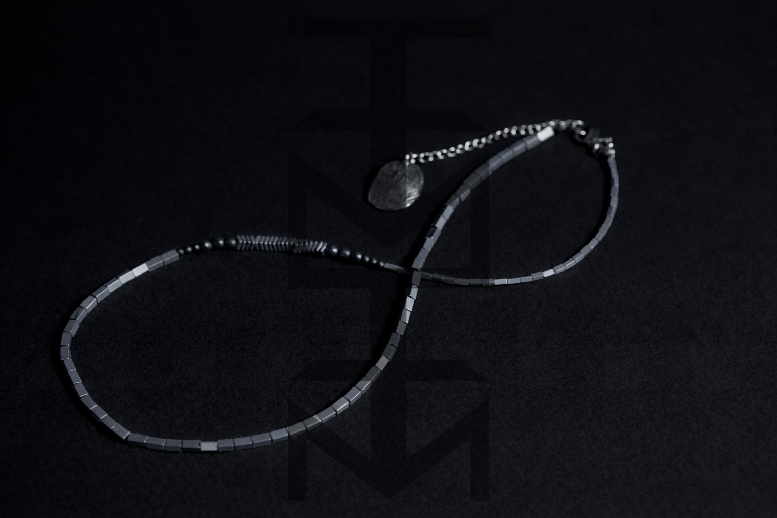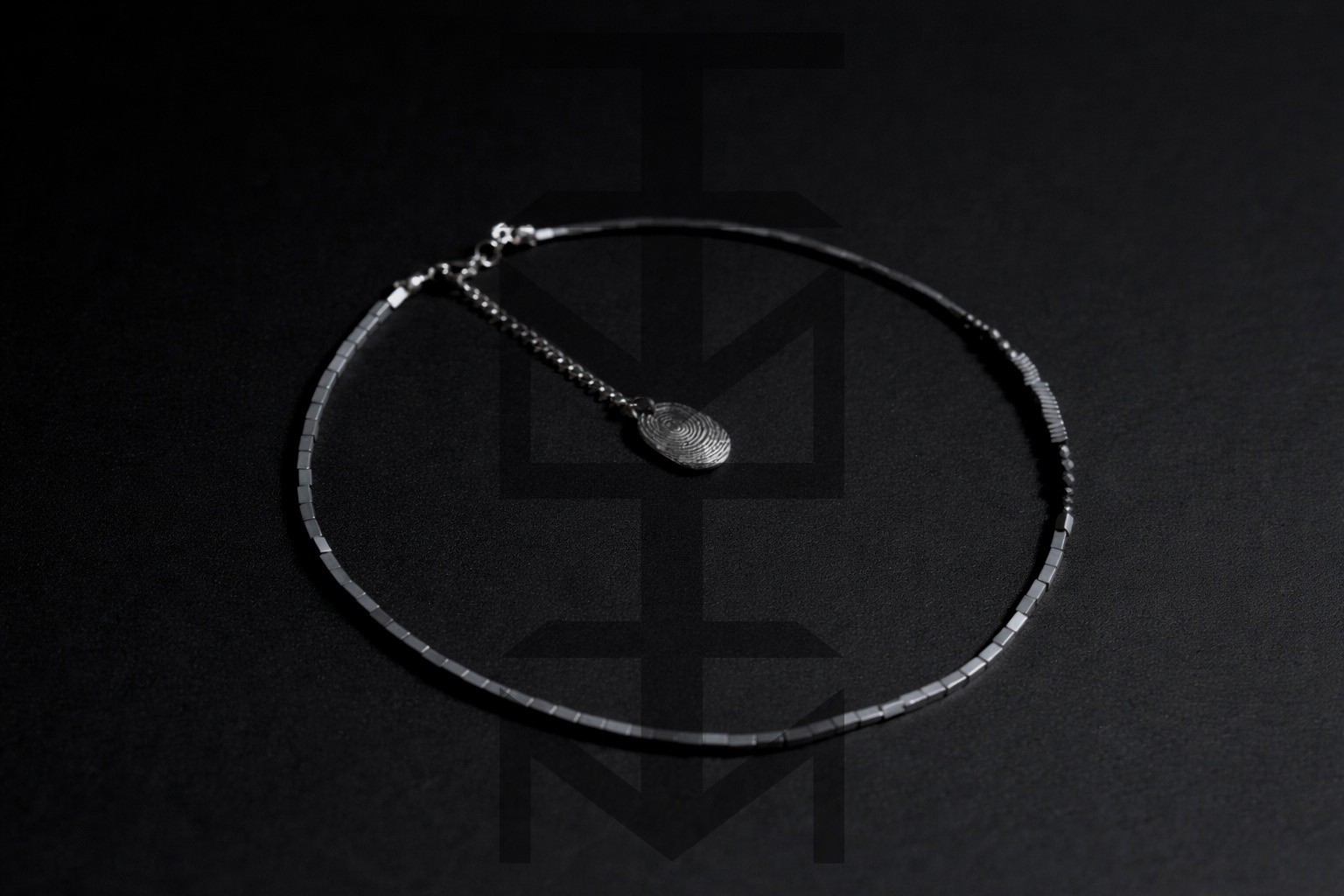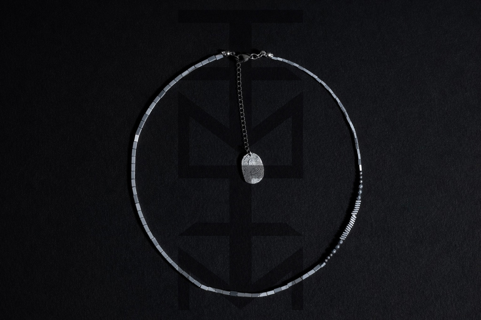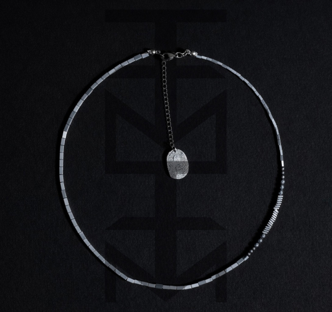 NASZYJNIK ZE SREBRNEGO HEMATYTU - LINIE PAPILARNE