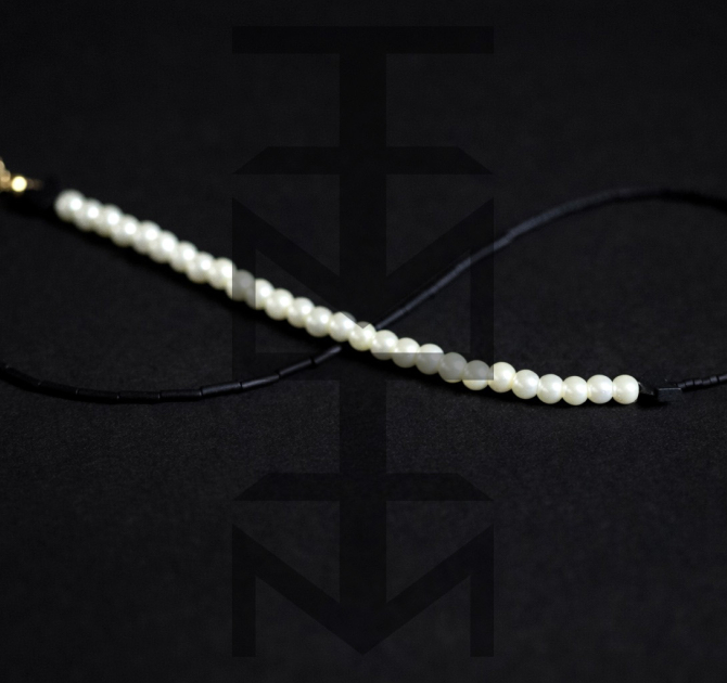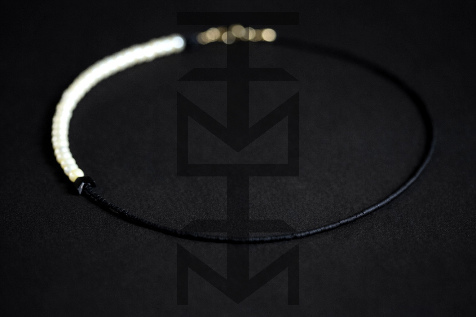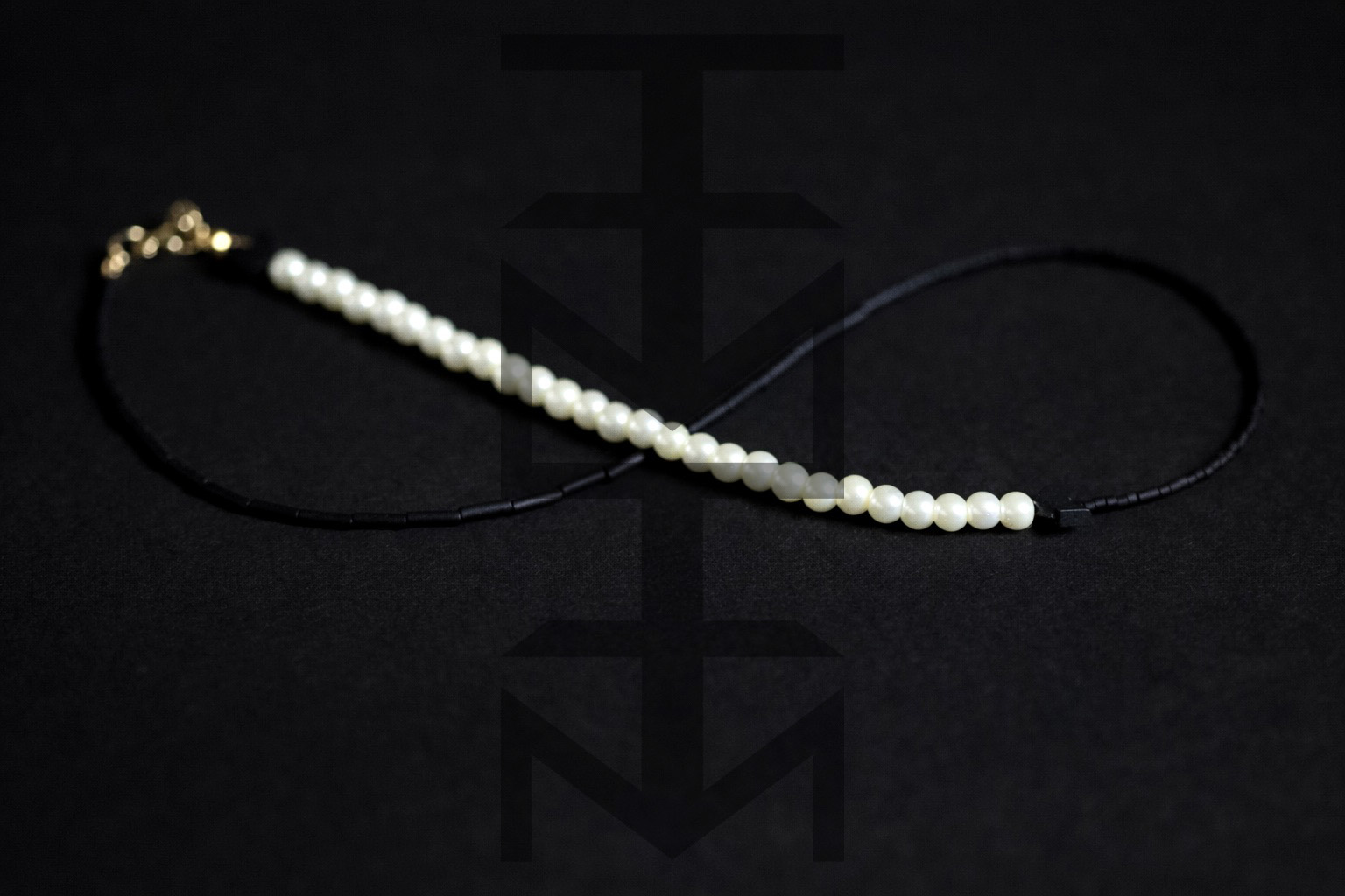 Delikatny, niezwykle kobiecy naszyjnik wykonany z najwyższej jakości półfabrykatów jubilerskich, koralików, matowego, czarnego  hematytu,  oraz szklanych pereł. Odpowiedni dla WEGAN. Idealny na wakacje i prezent!