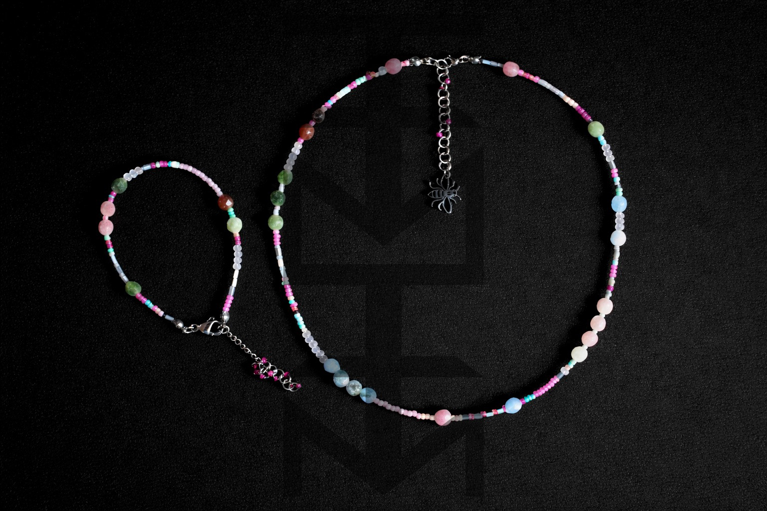 PASTELOWY NASZYJNIK I BRANSOLETKA Z TURMALINEM - PSZCZOŁA