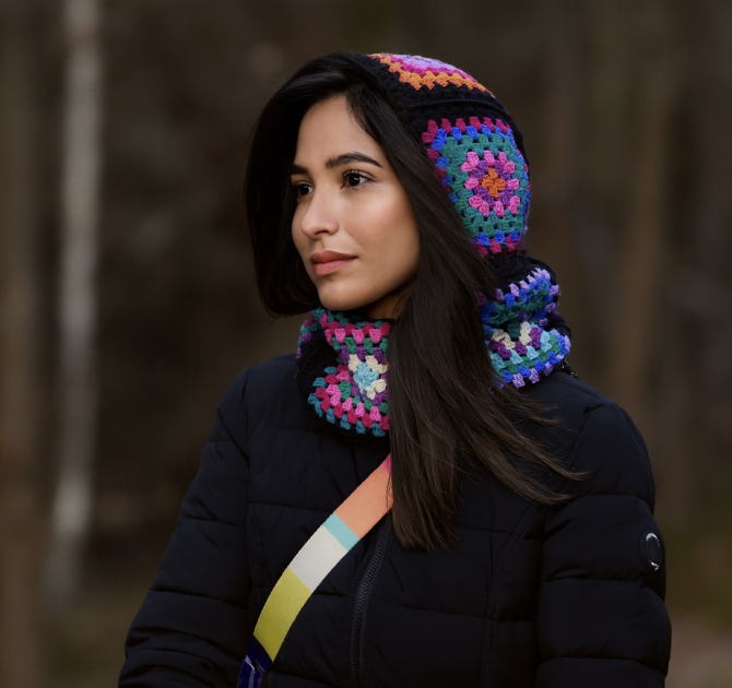 Niepowtarzalny kaptur wykonany ręcznie szydełkiem w pracowni ZUZU. Postanowiliśmy wykorzystać jako element ozdobny całej serii ,,kwadraty babuni" i stworzyć kolorową i jedyną w swoim rodzaju kolekcję, którą znajdziecie tylko u nas:) Kaptur od wewnątrz posiada podszewkę 100% bawełnianą.