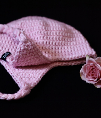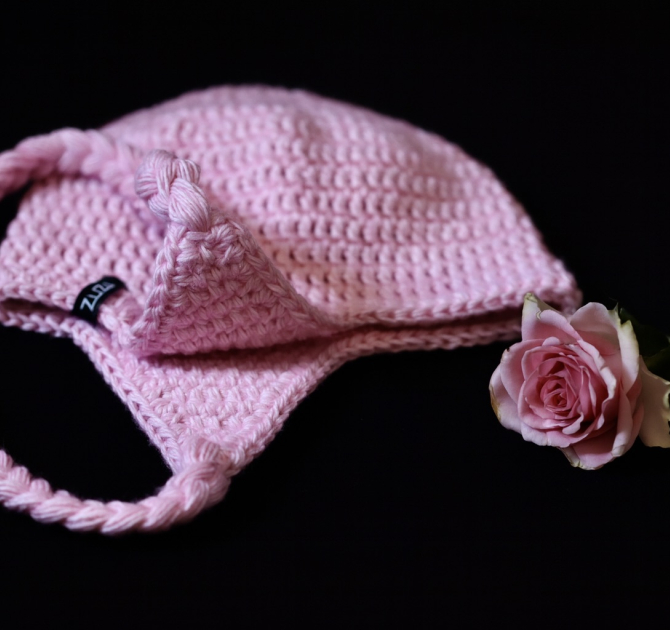 RÓŻOWA PASTELOWA CZAPKA Z NAUSZNIKAMI